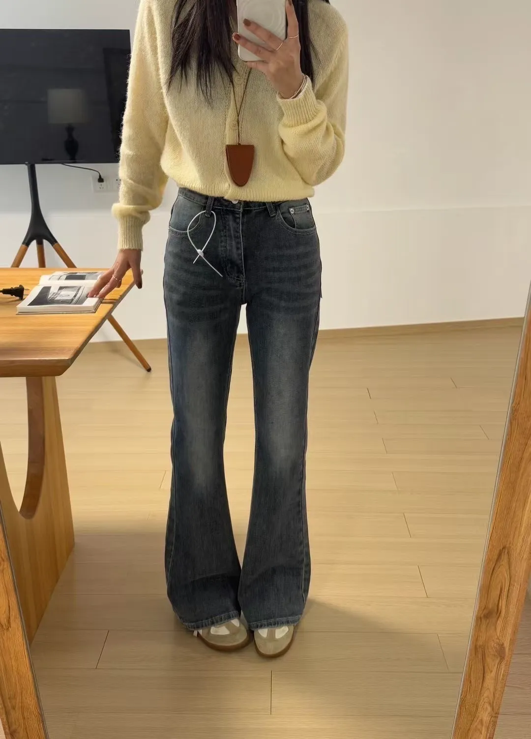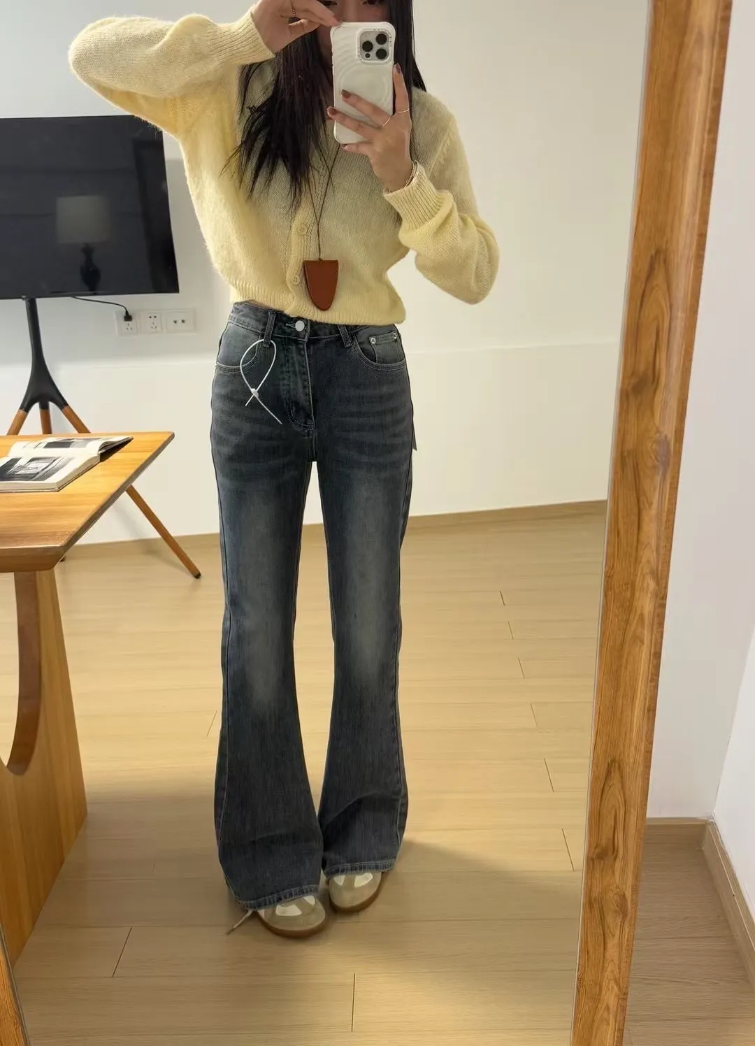 小喇叭的設計低調顯腿長,順身版型不顯胯寬,