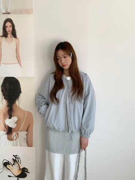 縮口無領拉鍊外套