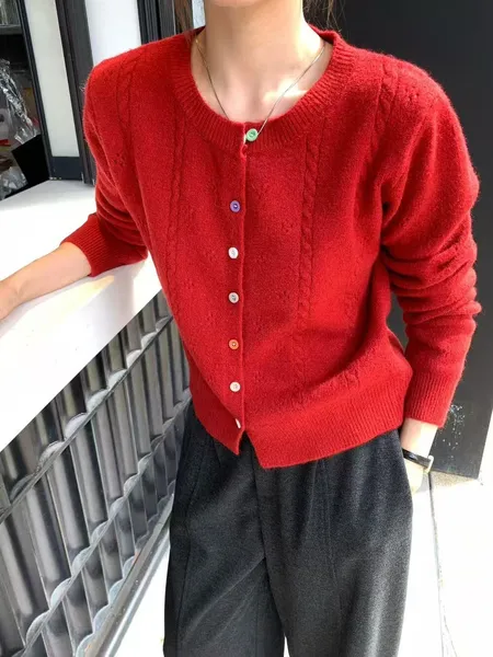 馬卡龍小釦針織上衣