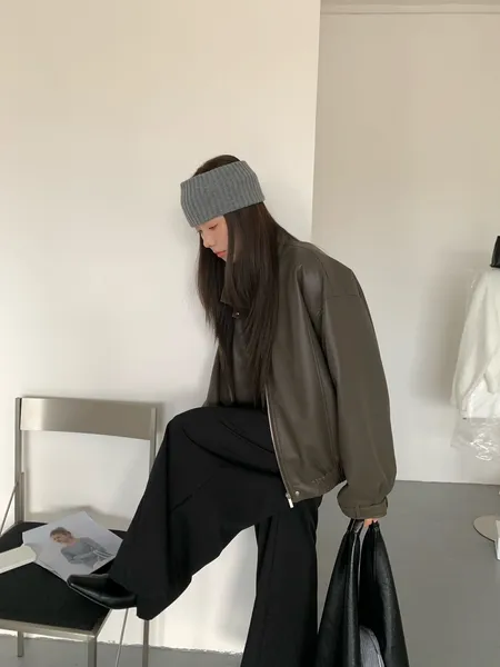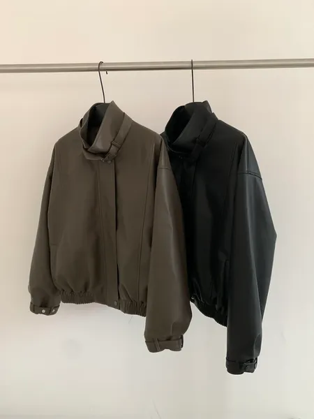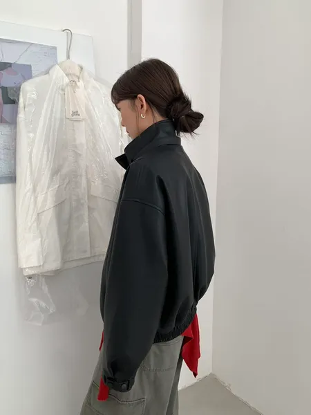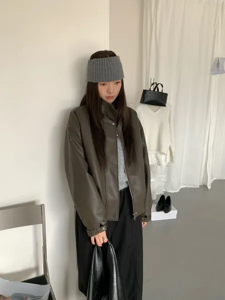 皮革率性立領外套
