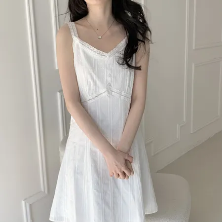 緹花肩帶V領短洋裝