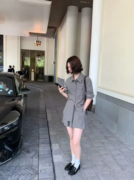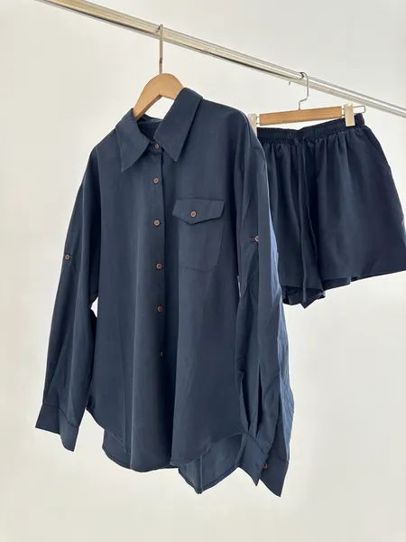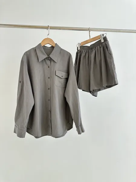 口袋造型襯衫短褲套裝(拆售)