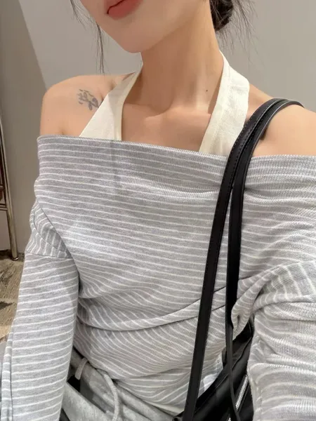 假兩件繞脖針織上衣