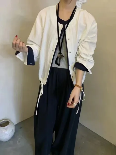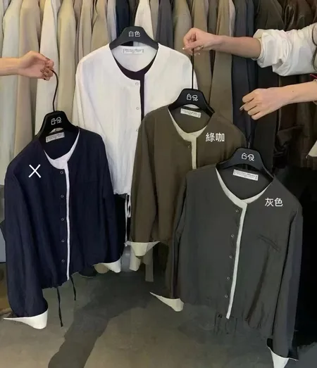 撞色圓領排釦上衣