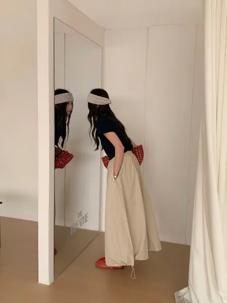 鬆緊A字傘裙(下擺可抽繩)