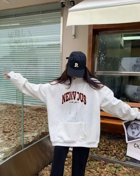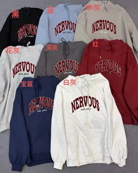 QQ毛刺繡字母連帽大學T