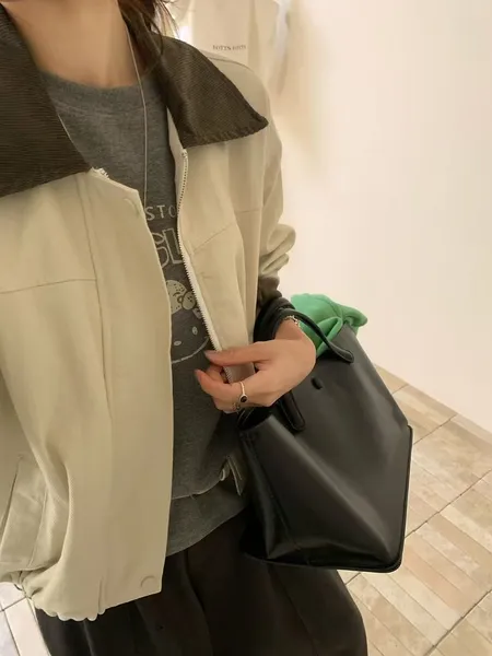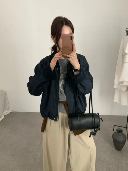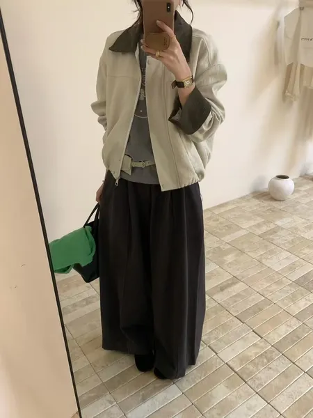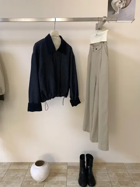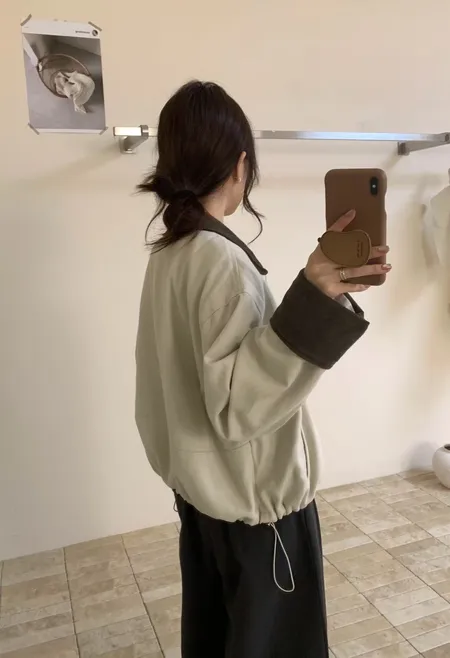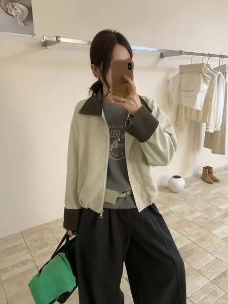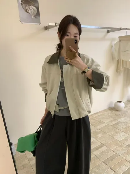 拼色翻領拉鍊外套