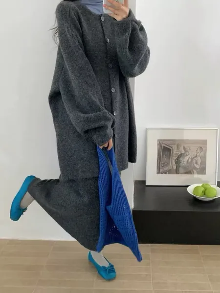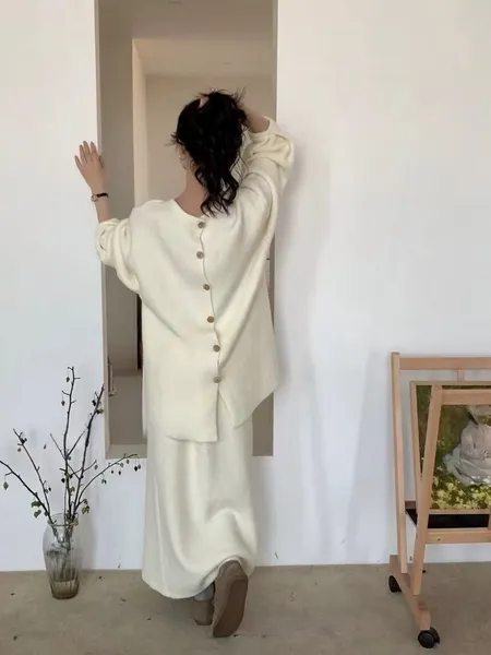 後排釦溫柔小姐姐套裝(上衣兩面可穿+長裙)