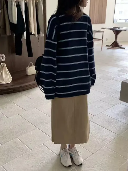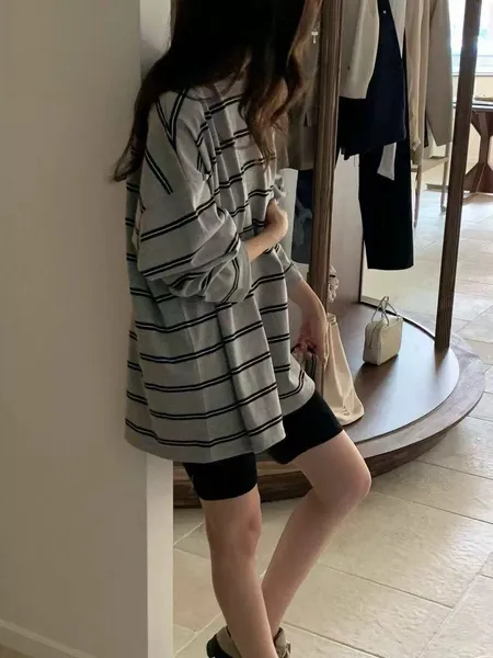 寬條紋長袖大T