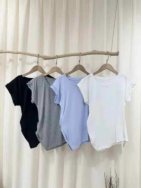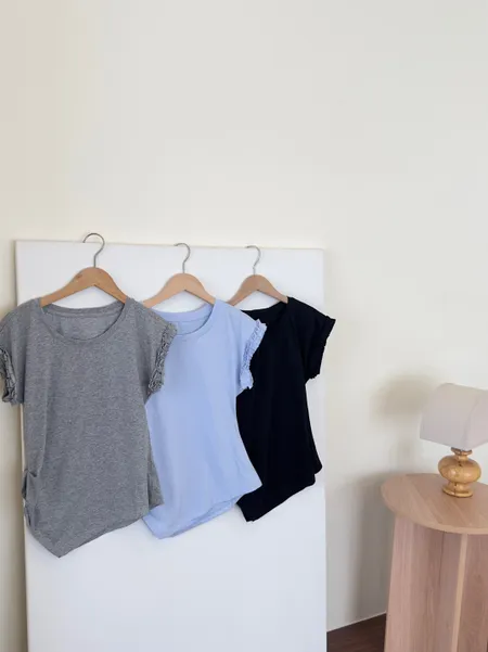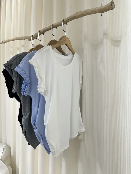 側抓皺花邊上衣