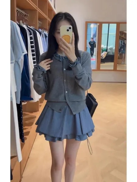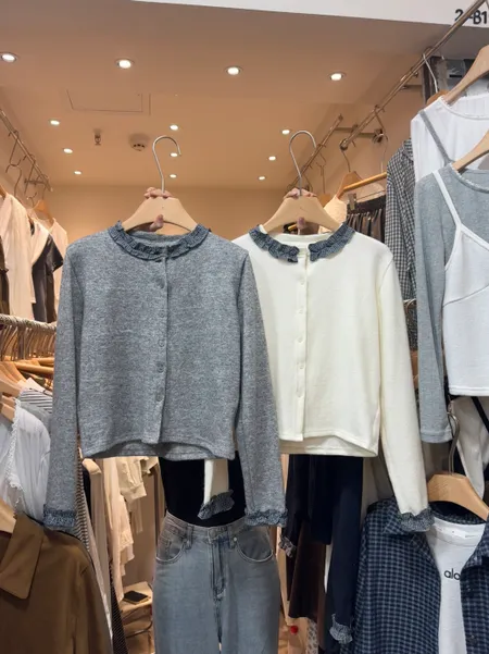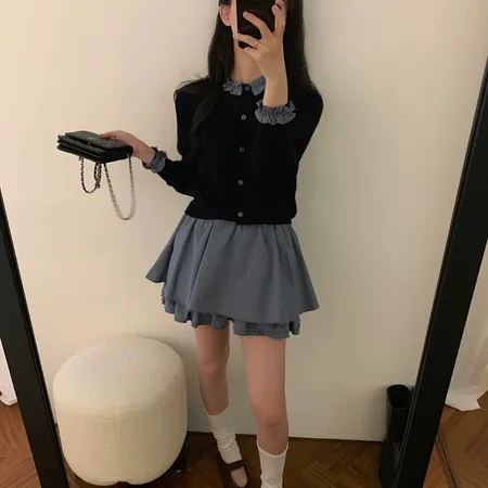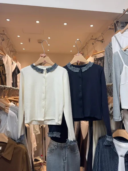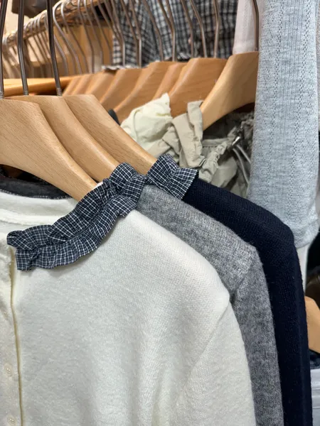 格紋領針織排釦上衣