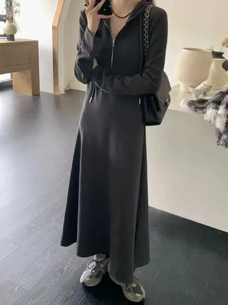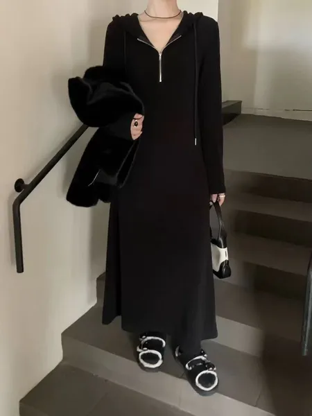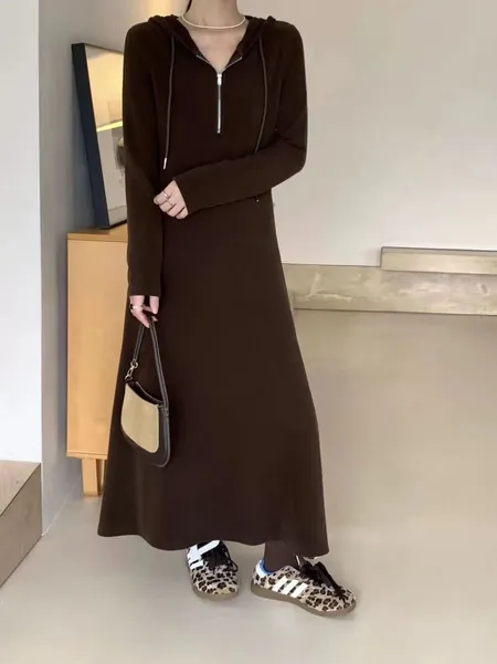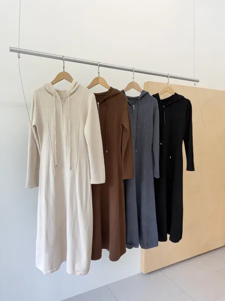 拉鍊連帽針織長洋