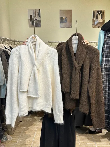 毛毛感圍巾上衣兩件組