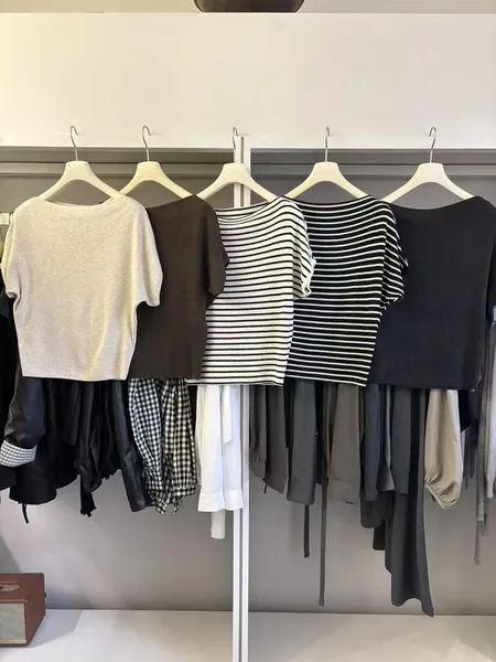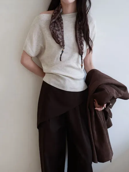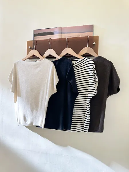 船型領針織短袖上衣