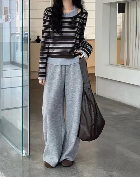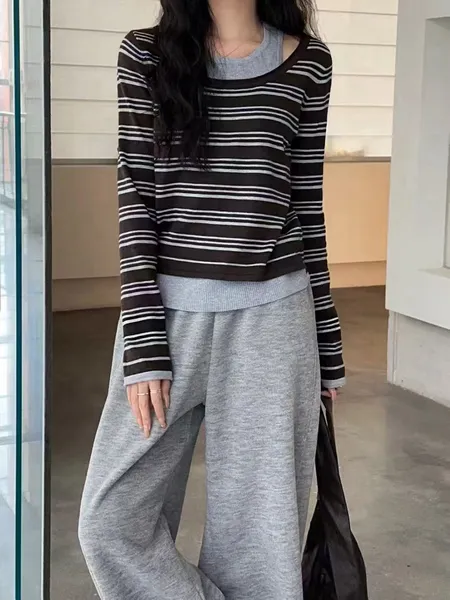 假兩件條紋針織上衣