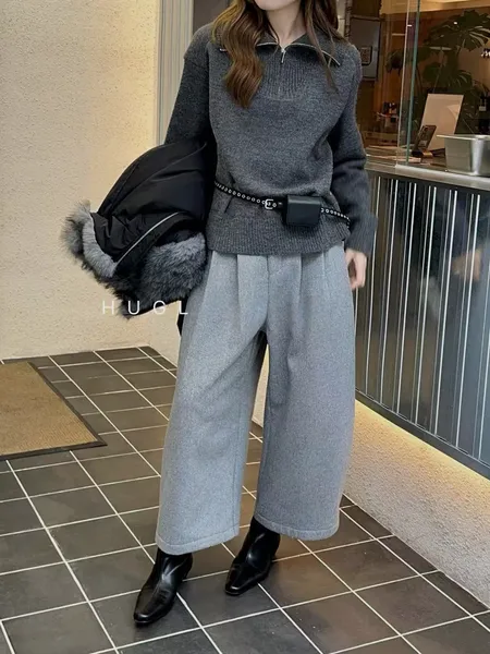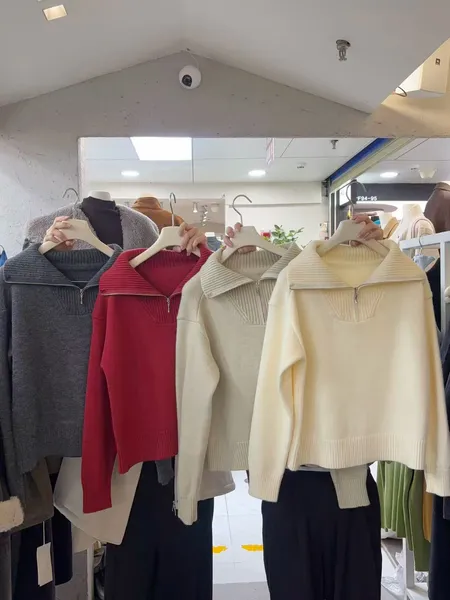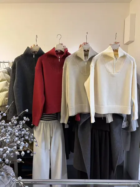 拉鍊翻領針織上衣