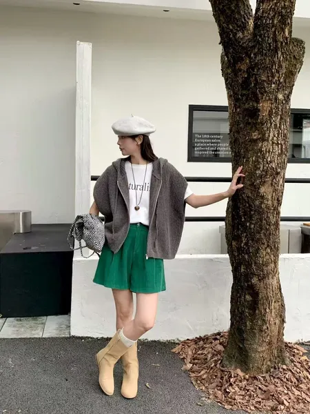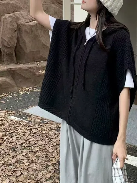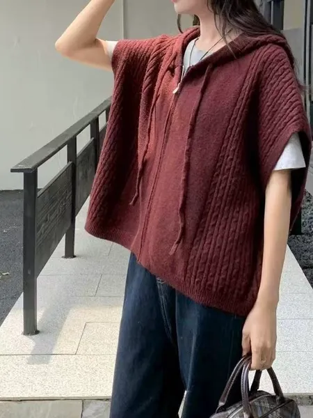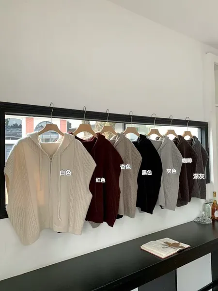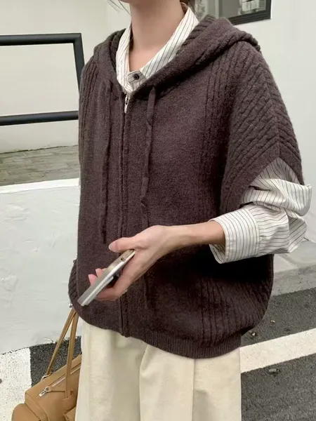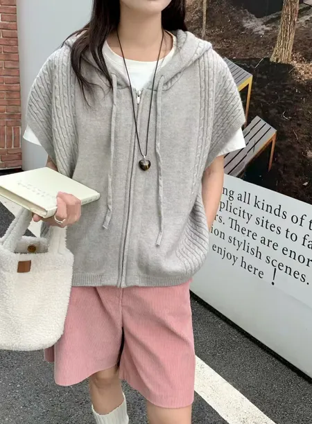 連帽麻花針織拉鍊背心