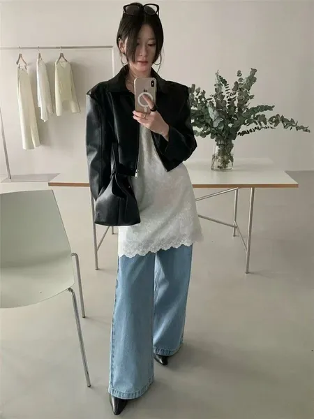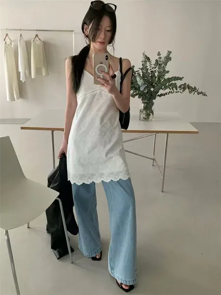 細肩拼接蕾絲感短洋裝