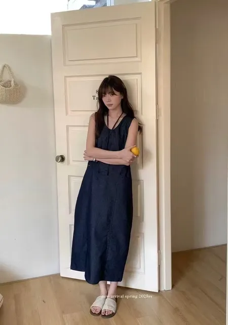 水洗材質燈籠長洋裝