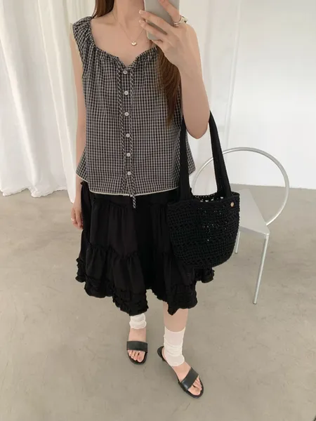 滾邊造型背心上衣(領口可調)