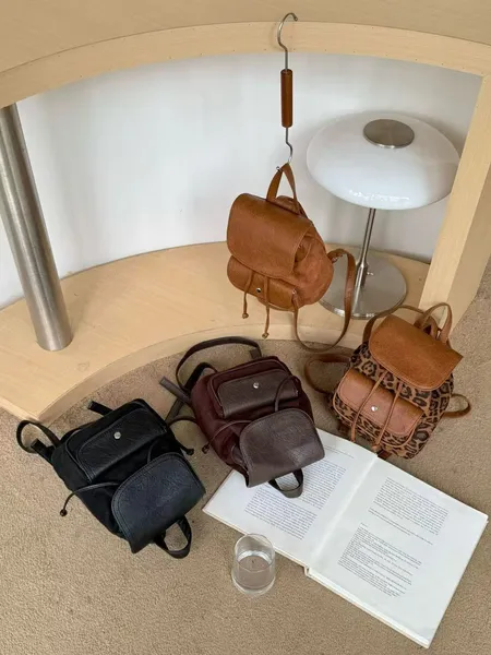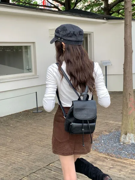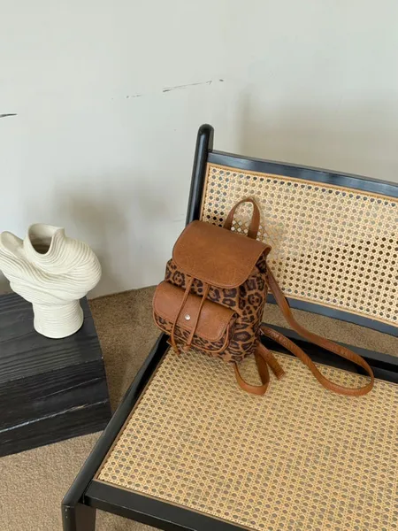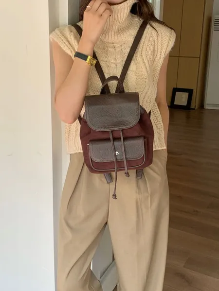 麂皮拼皮革材質後背包(可調節長度)