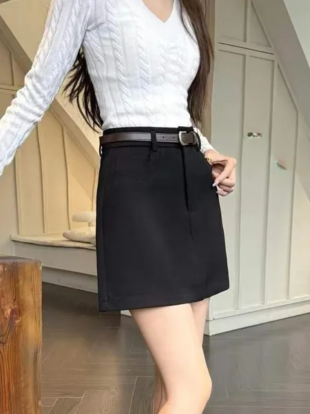 挺版A字西裝短裙(附腰帶)