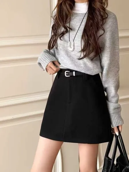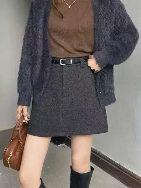 毛料A字短裙(附皮帶)